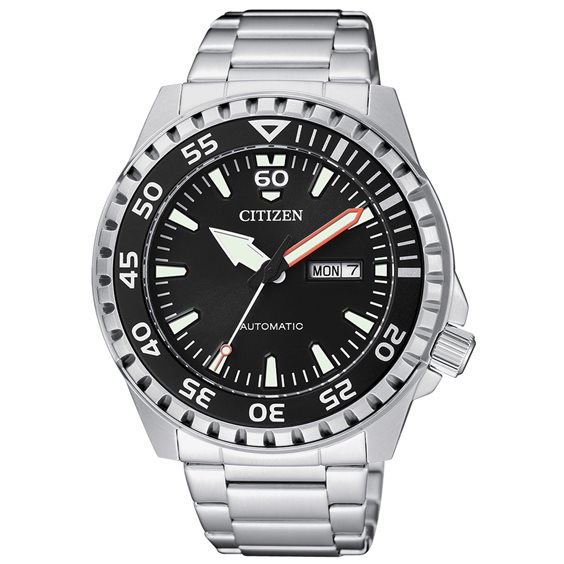 Orologio solo tempo. Cassa in acciaio spazzolato con lunetta girevole unidirezionale, fondo serrato a vite, ansa 24 mm. Movimento meccanico automatico day-date. Vetro minerale. Quadrante colore nero con lancette e index luminor. Bracciale regolabile in acciaio spazzolato, chiusura a dèployante con pulsanti. Peso 185 grammi. Garanzia 2 anni.