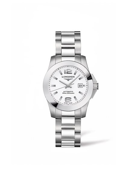Orologio automatico da donna Longines in acciaio della linea Conquest. - Corona a vite - Vetro zaffiro antigraffio con trattamento antiriflesso - Dimensioni cassa: Ø 29,50 mm - Impermeabilità: impermeabile fino a 30 bar