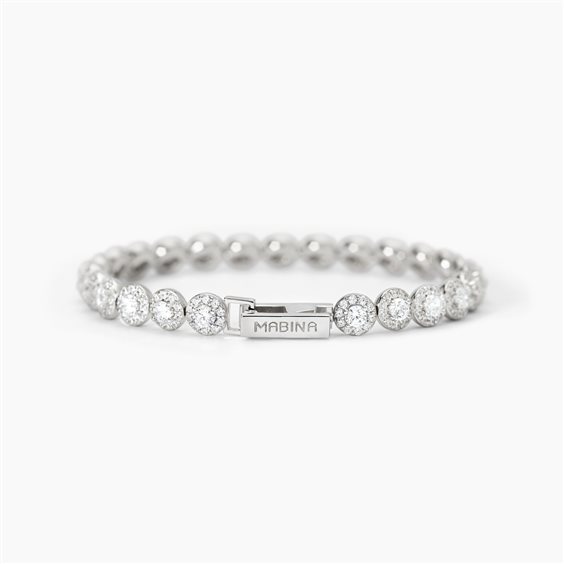 Bracciale tennis in argento 925/°°° rodiato con zirconi bianchi. Chiusura pinza a molla. Misura cm 17.