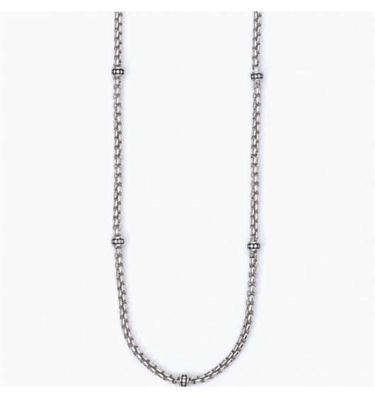 Collana da uomo realizzata con catena veneziana in argento 925% rodiato con elementi impreziositi da zirconi bianchi dal diametro di 1,25 mm. Ha lunghezza di 50 cm. Chiusura a moschettone.