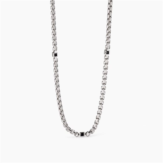 Collana in argento 925/ººº rodiato con catena veneta 3 mm e zirconi neri carré 2x2 mm, lunghezza 50 cm