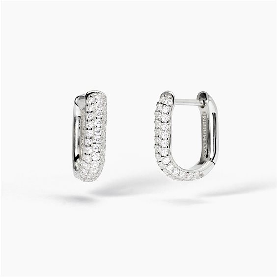 Orecchini da donna ovali in argento rodiato con pavé. • Diametro zirconi: 1,25 mm • Lunghezza tot. orecchino: 1,5 cm • Materiale: Argento 925, Zirconi