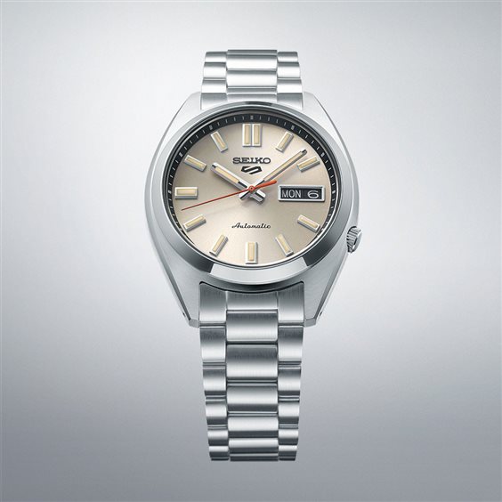 Il nuovo Seiko 5 Sports SRPK91K1 è la riedizione dell'iconica cassa SNXS. Questo modello è animato dal movimento automatico Calibro 4R36, che gli conferisce una riserva di carica di 41 ore. La lumibrite applicata alle lancette e agli indici garantisce un'eccellente leggibilità al buio. L'orologio è dotato di un bracciale in acciaio inossidabile.