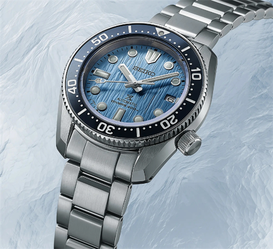Un quadrante azzurro con una lunetta blu più scura caratterizza la nuova riproduzione dell'orologio subacqueo del 1968, che è stato il primo orologio Seiko ad essere resistente all'acqua fino a 300m e alimentato da un movimento automatico a 10 vibrazioni al secondo. Questo orologio Prospex SPB299J1 è alimentato dal collaudato calibro 6R35 e offre una riserva di carica di 70 ore. Impermeabile fino a 200 metri, è presentato su un bracciale in acciaio con prolunghe e chiusure sicure. La sua cassa ha un rivestimento ultra duro e un vetro zaffiro con un rivestimento antiriflesso sulla superficie interna. Spettacolare quadrante, in questa edizione Speciale, con richiamo alle venature delle pareti di ghiaccio, indici e sfere con lumibrite per una miglior visione in situazioni di scarsa luminosità.