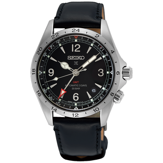 L'emblematica collezione Seiko "Alpinist" comprende un nuovo modello GMT SPB379J1, pur mantenendo il suo inimitabile design chic e vintage. Questo orologio automatico è dotato di movimento 6R54 con funzione GMT. Il quadrante in acciaio inossidabile antigraffio è accompagnato da un vetro zaffiro curvo antiriflesso. Il magnifico quadrante nero presenta una lunetta interna bidirezionale con punti cardinali e lancette e indici rivestiti di Lumibrite. Questo orologio Prospex è impermeabile fino a 20 bar ed è dotato di un cinturino in pelle blu che si abbina perfettamente al colore del quadrante.