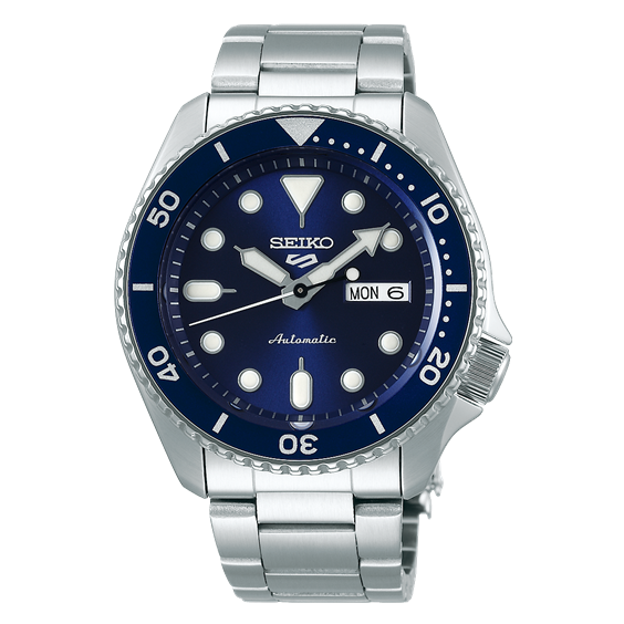 Orologio uomo seiko, Sport SRPD51K1, collezione 5 sports, movimento automatico, cal seiko 4r36, riserva di carica 41 ore , cassa acciaio 42.5 mm. quadrante Blu con indici luminosi lumibrite, ghiera girevole unidirezionale , vetro minerale hardlex, bracciale in Acciaio, impermeabile fino a 10 bar Cassa Acciaio.