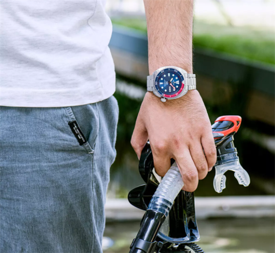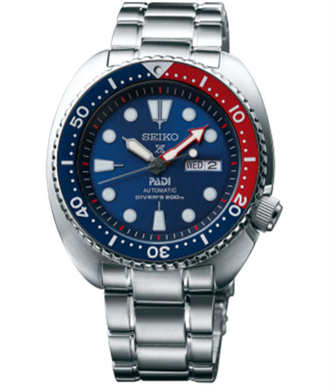 Orologio subacqueo professionale. Movimento a carica automatica con opzione carica manuale 4R36. tre sfere, giorno data, frequenza 21600 alternanze/ora, 24 rubini, riserva di carica di oltre 41 ore. Corona e fondello a vite W.R 200metri, ghiera girevole unidirezionale con trattamento IP. blu e rosso. Indici e sfere con trattamento LUMIBRITE per visione al buio. EDIZIONE SPECIALE PADI CON ASTUCCIO DEDICATO. Vetro Hardlex, doppia chiusura con sicurezza e possibilità allungo per indosso su muta sub.