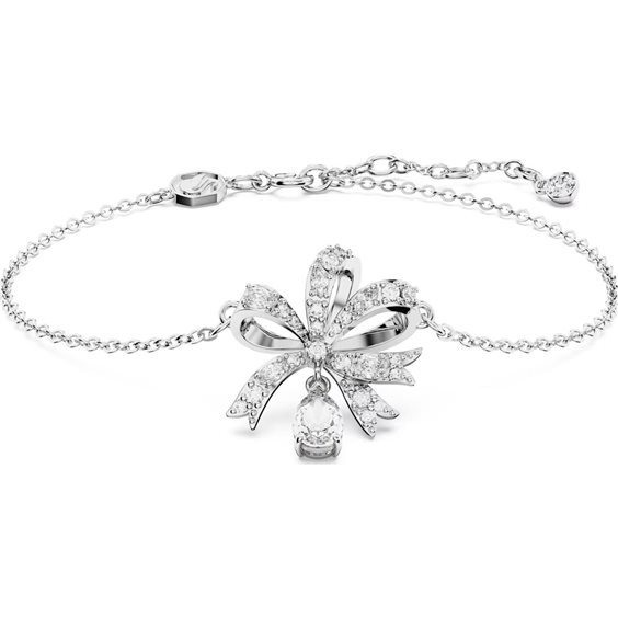 Questo bracciale Hyperbola fa una grande figura anche nei suoi più piccoli dettagli. Di una bellezza assoluta, presenta un design placcato rodio a forma di fiocco, impreziosito da cistalli Cry montati utilizzando la tecnica dello chattonage. Una singola pietra pendente a forma di pera conferisce a questo gioiello un brillante tocco finale. Indossalo con un paio di orecchini assortiti per un look armonioso oppure sceglilo per un regalo che viene dal cuore. Articolo nr.: 5647581 Collezione: Hyperbola Lunghezza (minima - massima): 16.5 - 20.5 cm Dimensione decorazione: 2 x 1.6 cm Materiale: Cristalli, Placcatura rodio, Zirconia Colore: Bianco Tipo di fermaglio: Anello a molla